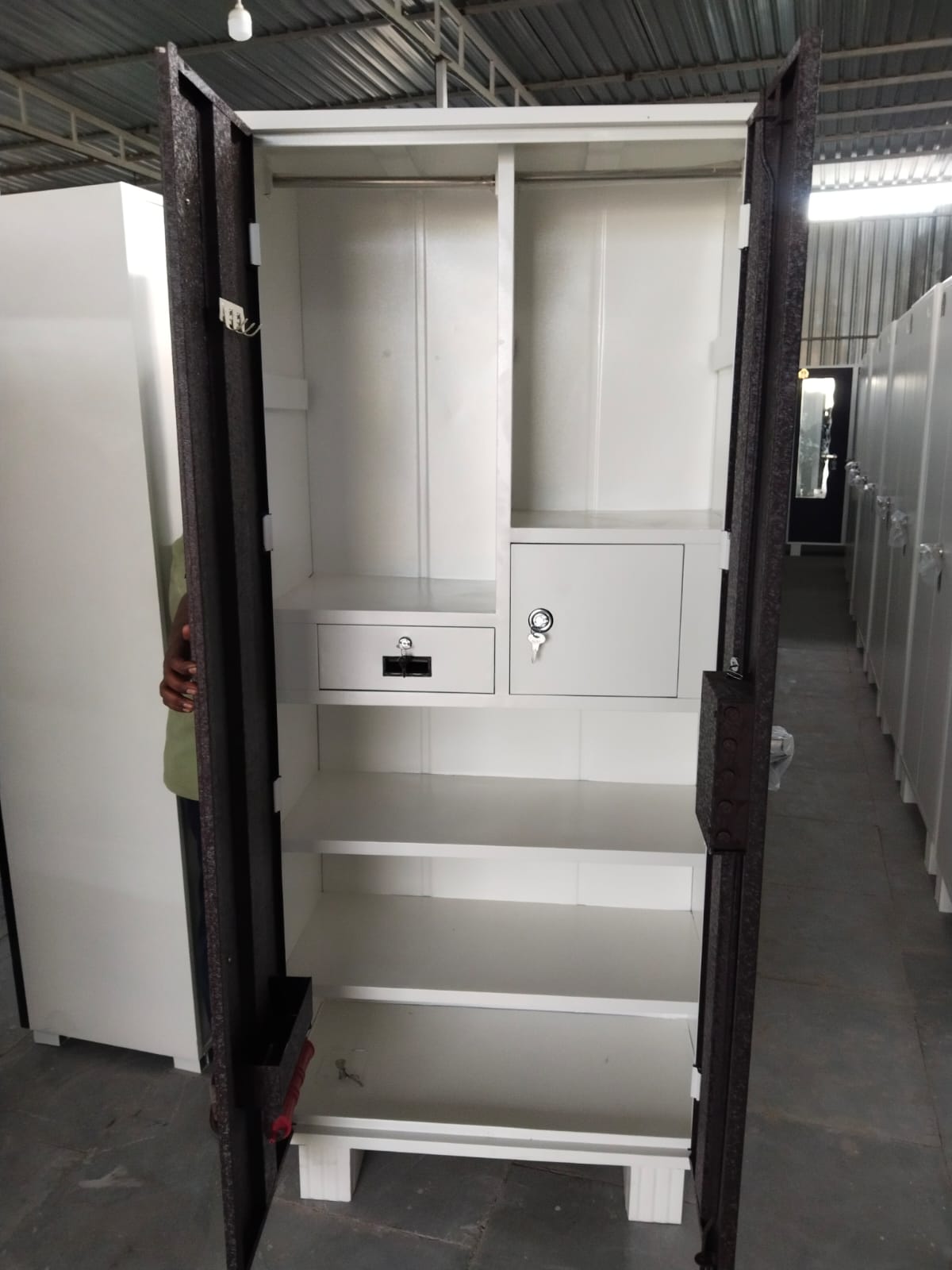 78x47x20 3 Door Steel Cupboard – Shree Steel Furniture Pune Maximize your storage space with the spacious and durable 78x47x20 3 Door Steel Cupboard from Shree Steel Furniture Pune. Designed for large storage needs, this cupboard is perfect for homes, offices, hostels, and commercial spaces. Crafted from premium-quality steel, this 3 door cupboard ensures long-lasting strength and reliability. Its wide design provides ample storage space, making it easy to organize clothes, files, documents, and other essentials efficiently. The cupboard features three sturdy doors with a secure locking system, offering enhanced safety for your valuables. Inside, multiple compartments and shelves allow better organization and easy access. The powder-coated finish adds a modern look while protecting the cupboard from rust and wear. Ideal for those who need extra storage with a clean and professional design, this 3 door steel cupboard is a practical and stylish solution. Key Features: High-quality steel construction Size: 78x47x20 inches 3 door spacious design Multiple shelves for organized storage Strong locking system for security Rust-resistant powder-coated finish Suitable for home, office & institutional use Why Choose Shree Steel Furniture Pune? Shree Steel Furniture Pune is a trusted manufacturer in Pimpri-Chinchwad and Pune, offering durable, affordable, and high-quality steel furniture for modern storage needs.